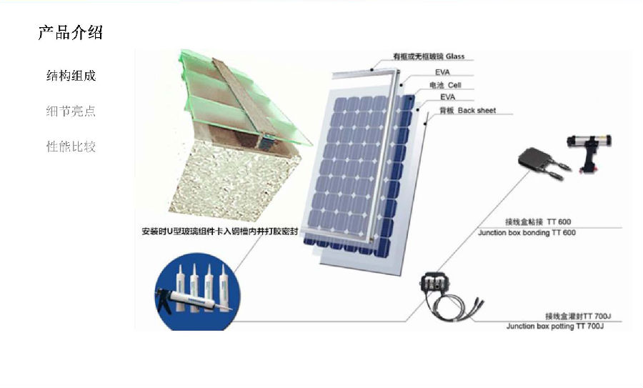 公司的主营产品是U型发电玻璃建材(UBIPV),兼有发电和建材的双重功能;满足绝缘、抗风、防雨、透光和美观的要求,还具有强度、刚度、便于施工安装及运输等。